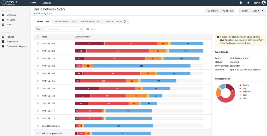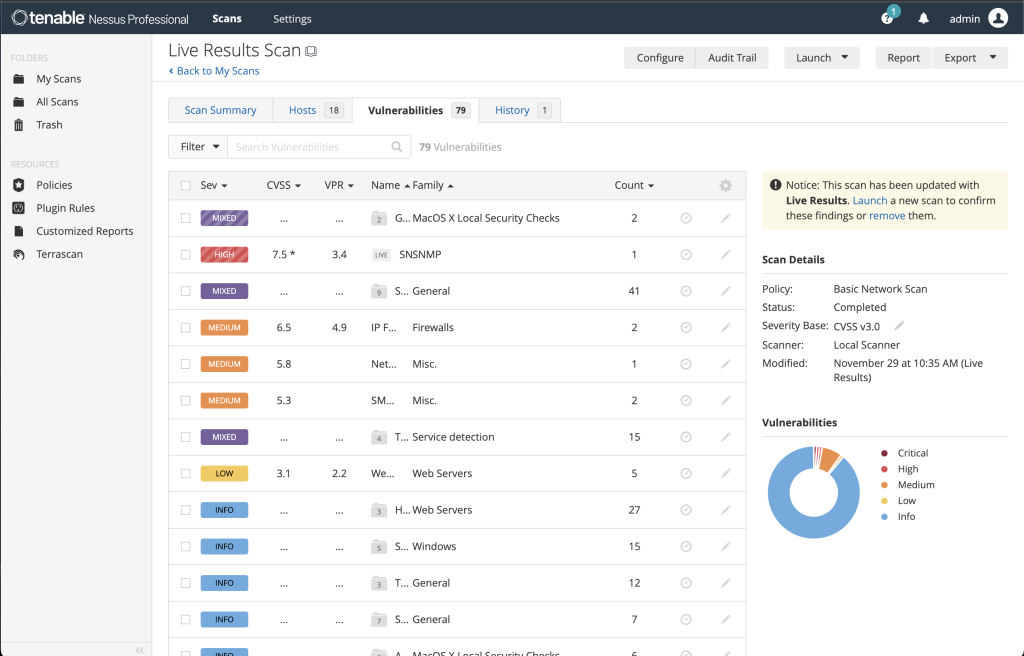 Nessus 拥有业界最多的 70000 个 CVE,与竞争对手的解决方案相比,扫描的技术更多,发现的漏洞更多。
