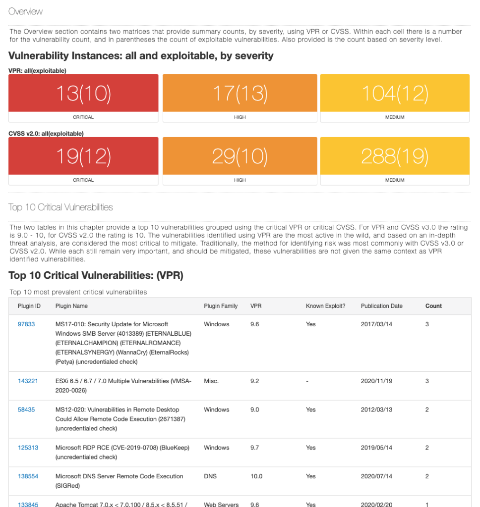 - CVSS v4、EPSS 和 VPR(适用于前 10 大漏洞)的漏洞评分